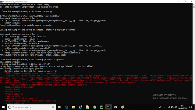 Hey guys! I am back with another important topic on our JARVIS project which is PyAudio! This very important for our Jarvis because, if we run our Jarvis without installing PyAudio, then it will through you out an error! and it will not take any input or given any output. There are different method to install PyAudio but I will show you the easiest method to install. So let's see how to install it....